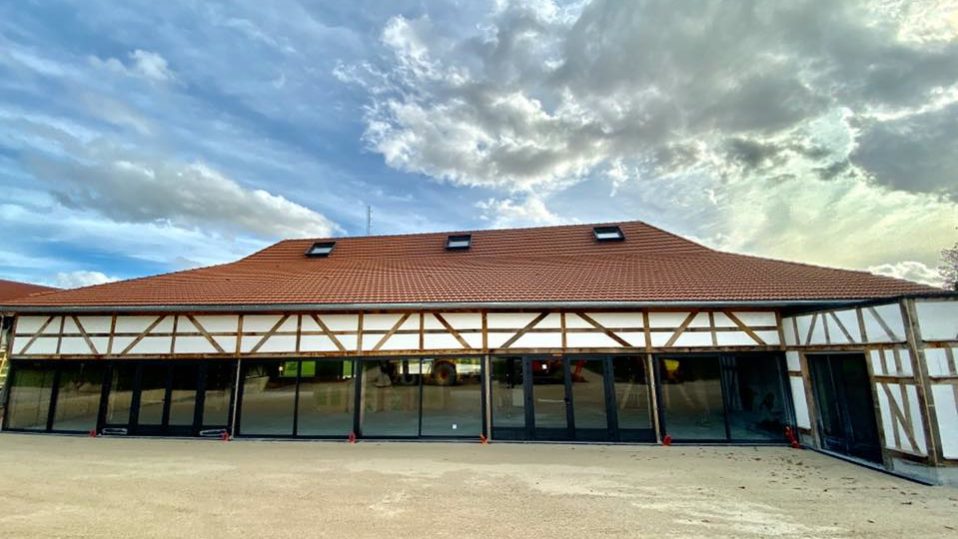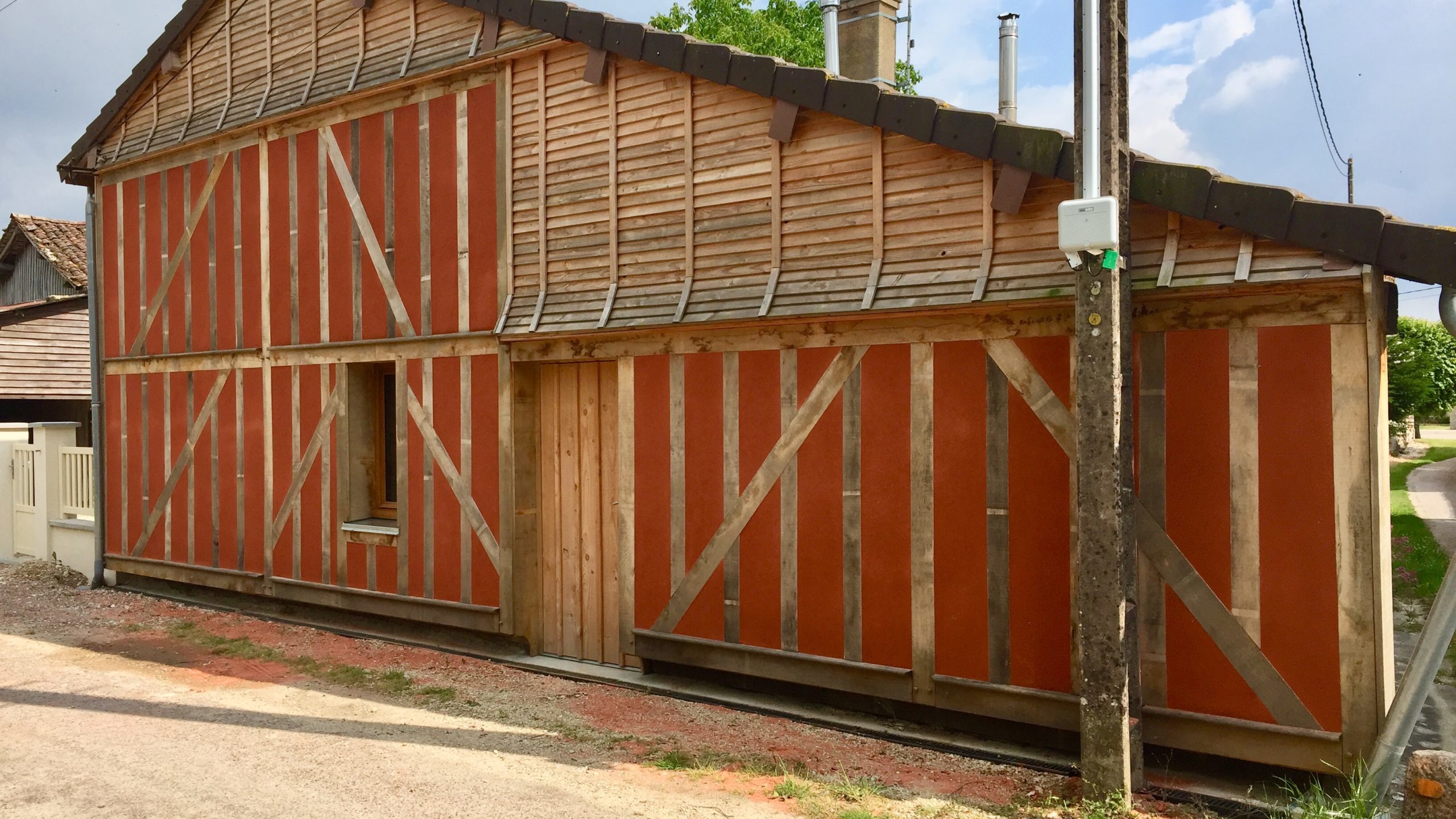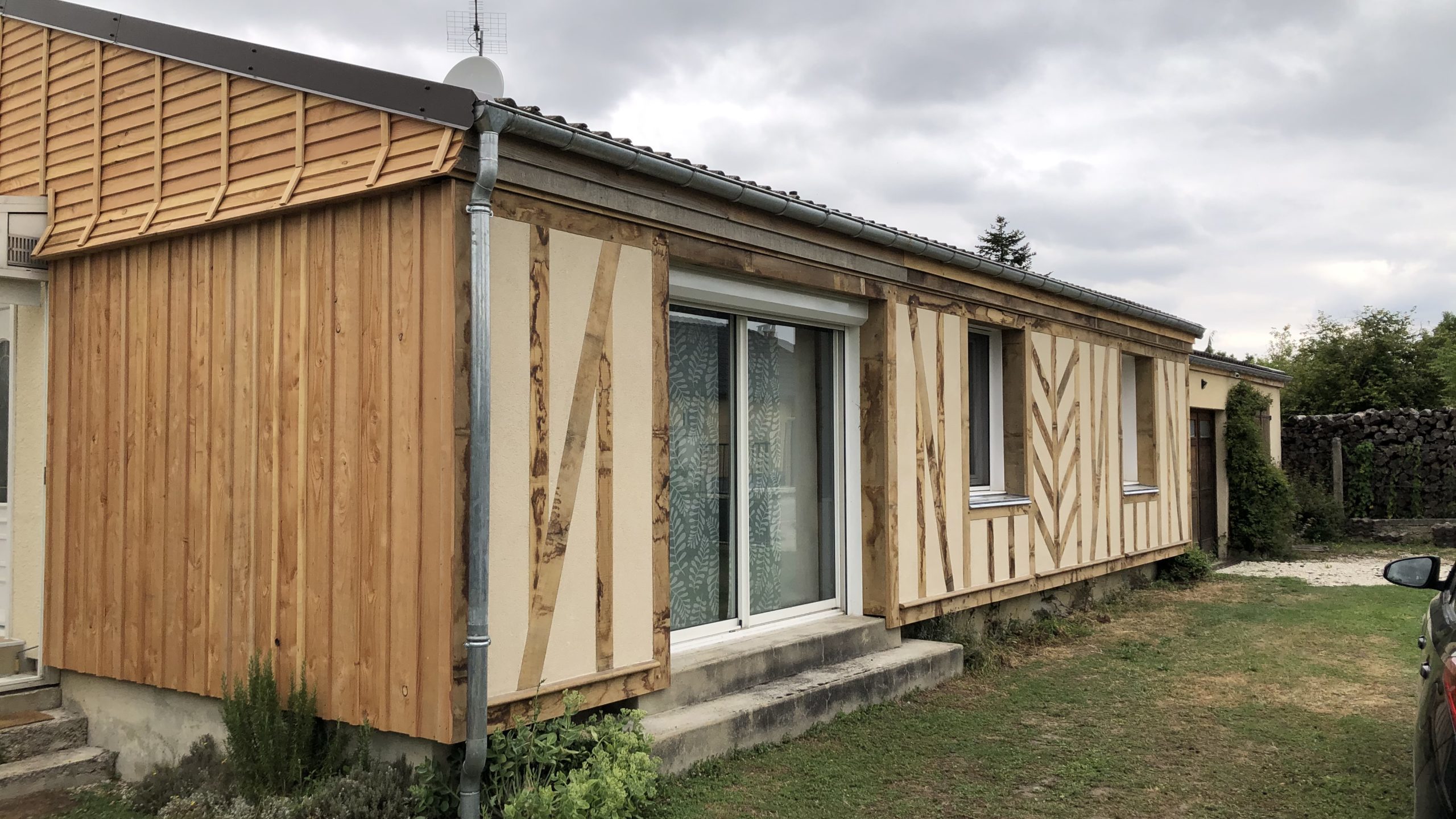 La façade principale revêtue d’une technique de colombages brevetée par les Ateliers Valentin en 2009.