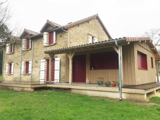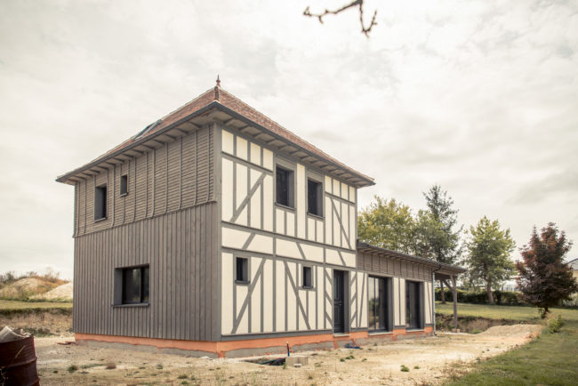 Conception et réalisation d’une maison en bois avec mélange de colombages et bardages.