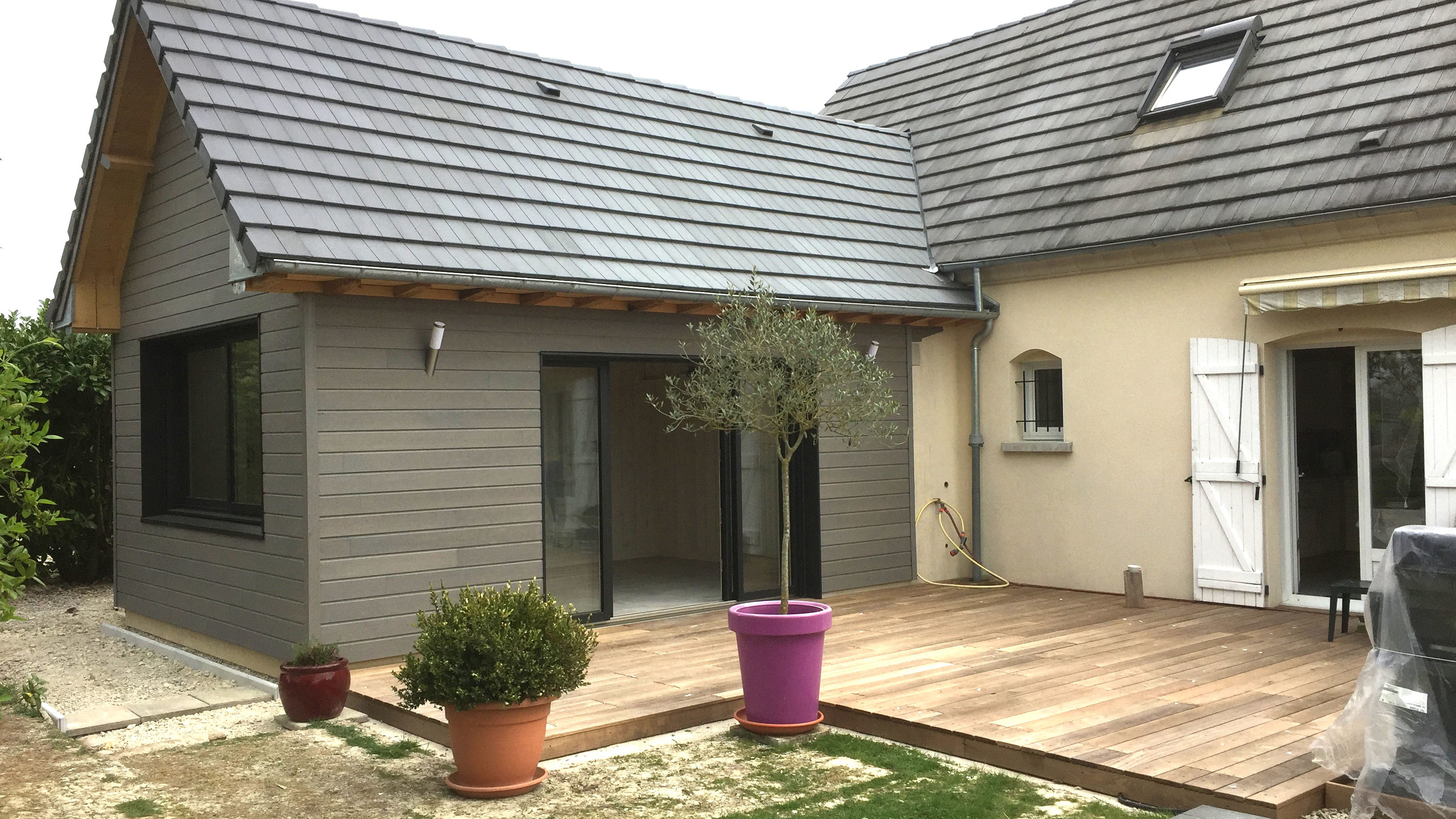 Nos prestations en menuiserie Conception et réalisation de garages, auvents, abris divers, terrasses.
